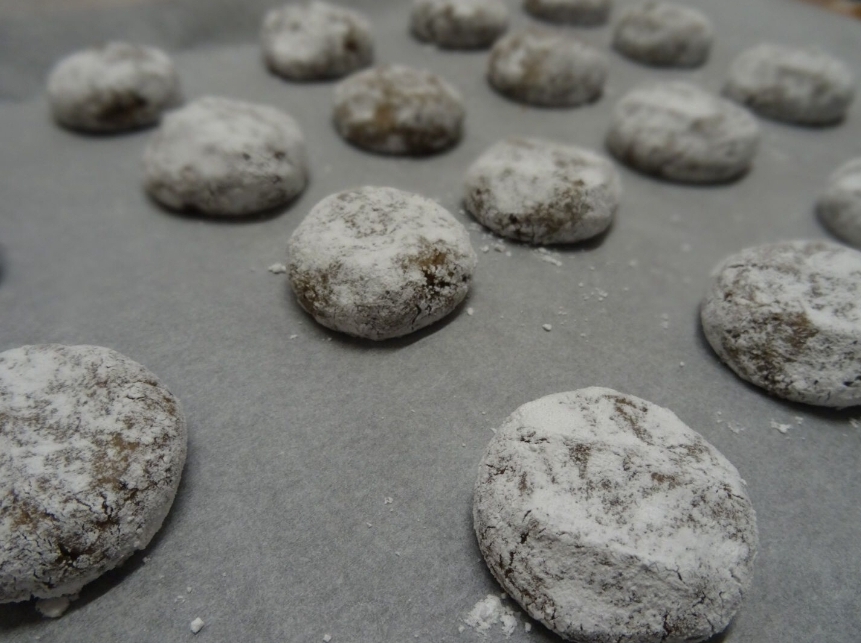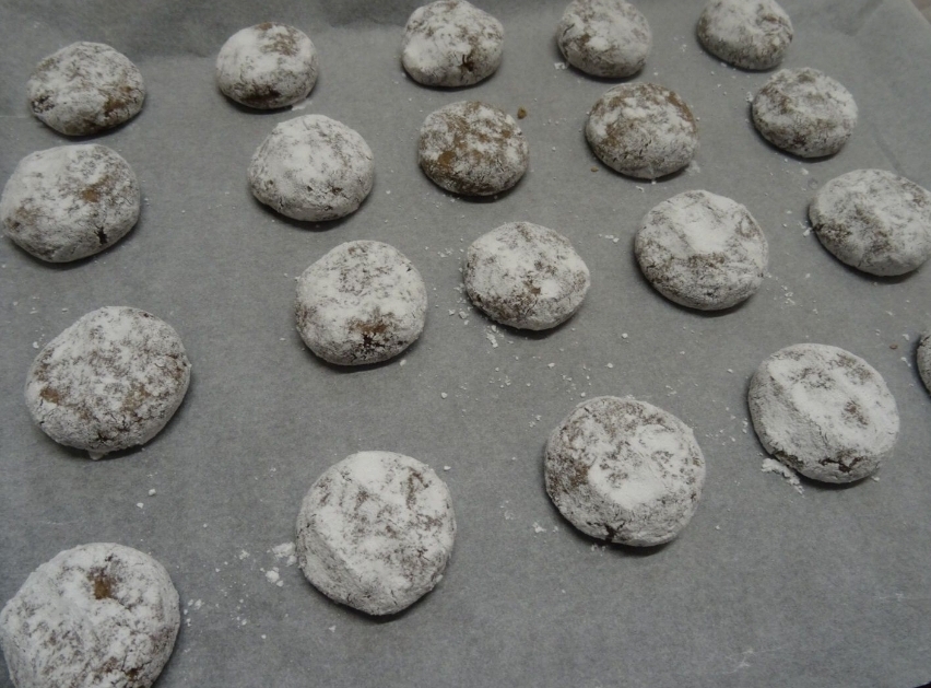 6/ Prennez l’Ă©quivalence d’une petite cuillĂšre de pĂąte ,façonnez- la lĂ©gĂšrement en boule et roulez- la dans le sucre glace.