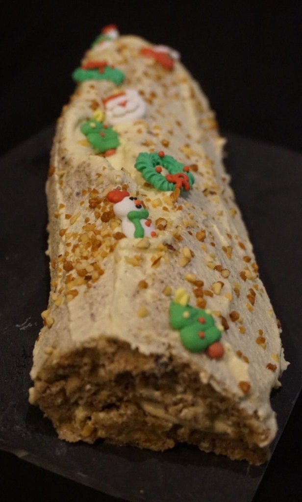 7/ Remettez au frais jusqu’à dégustation, votre BÛCHE DE NOËL AUX NOISETTES by PHILIPPE CONTICINI