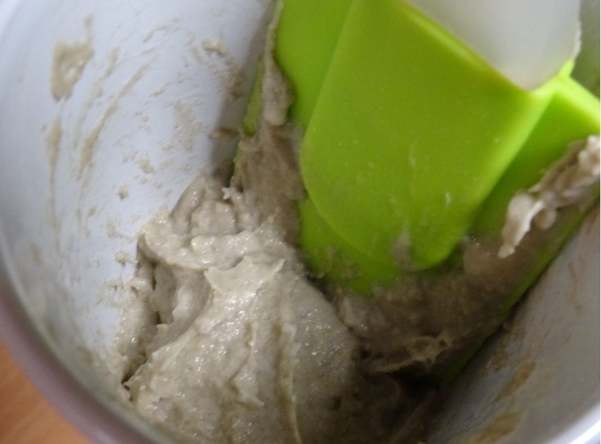 1/ Dans un mug ,mettez 20 gr de farine de seigle + 20 gr d’eau à 30 °C et mélangez énergiquement à l’aide d’une cuillère à café.