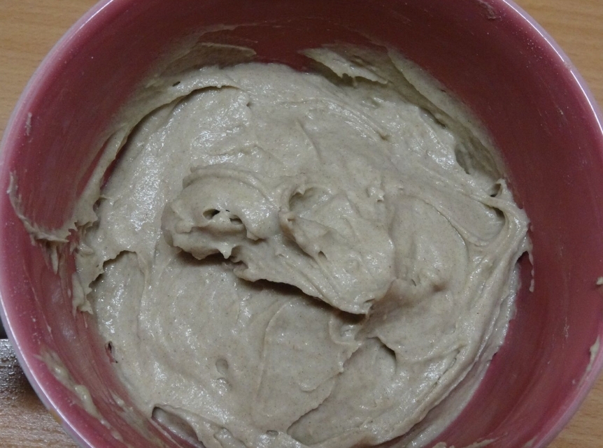 2/Dans un récipient un peu plus grand ,mettez 80 gr de farine de seigle et 80 gr d‘eau à 30°C et mélangez énergiquement à l’aide d’une maryse.