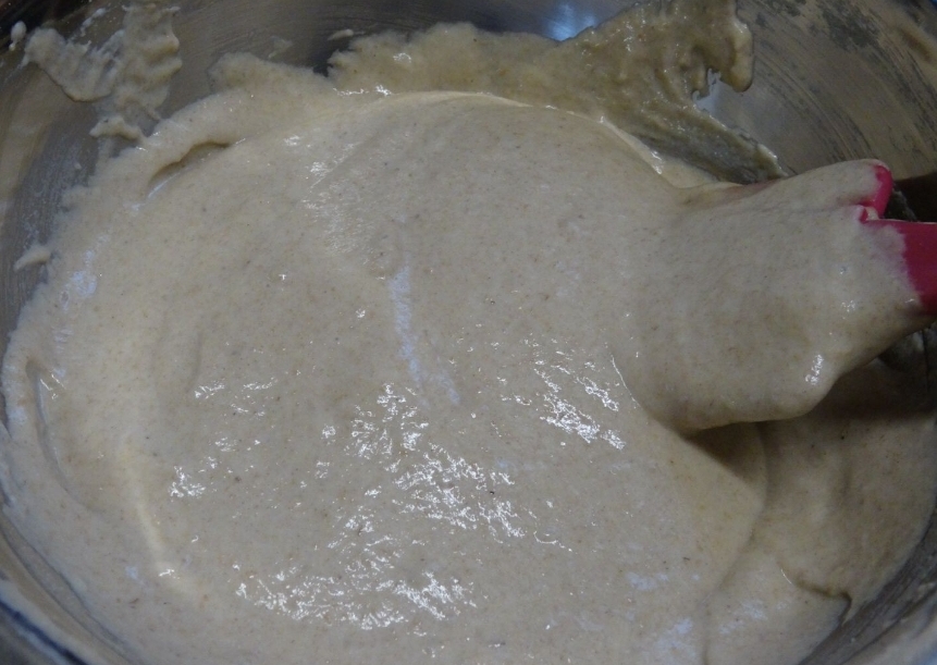 4/Ajoutez -y le levain du jour 1 et mélangez énergiquement avec la maryse.