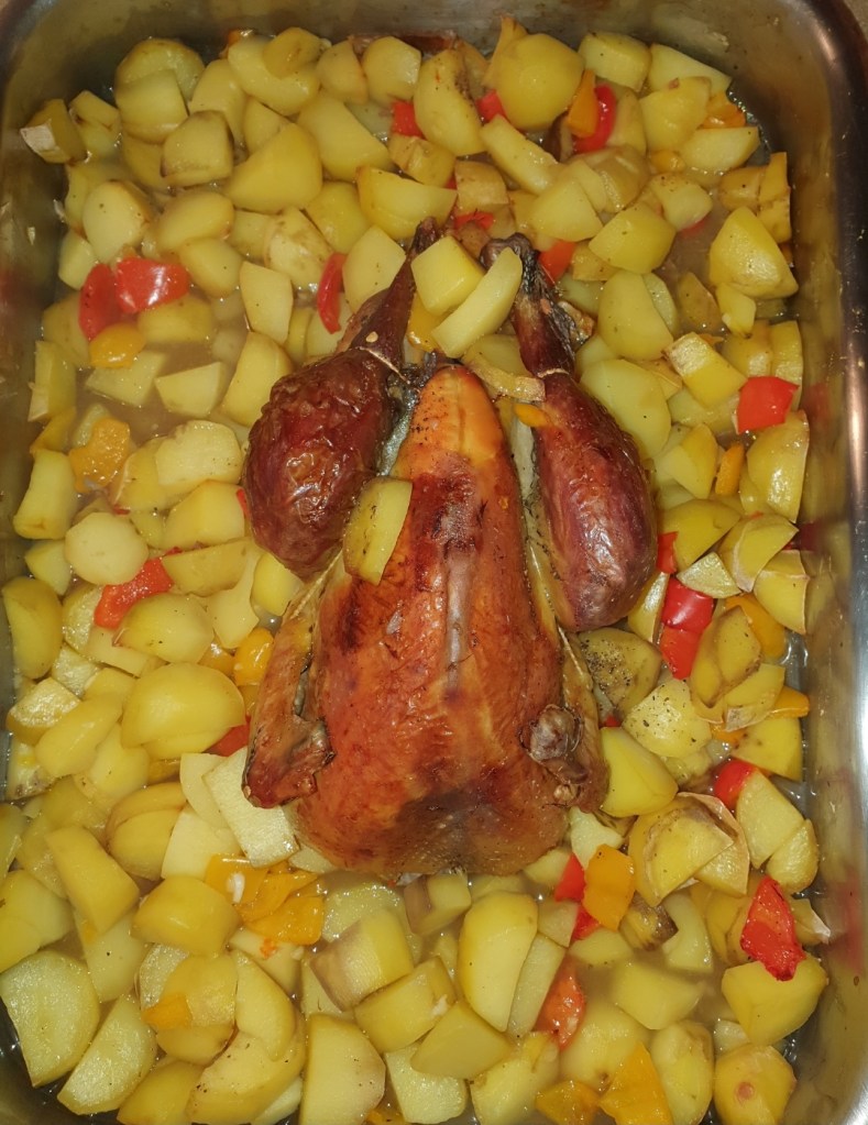 Voici ma recette de Pintade RĂŽtie et Pomme-de-Terre đ„ au four