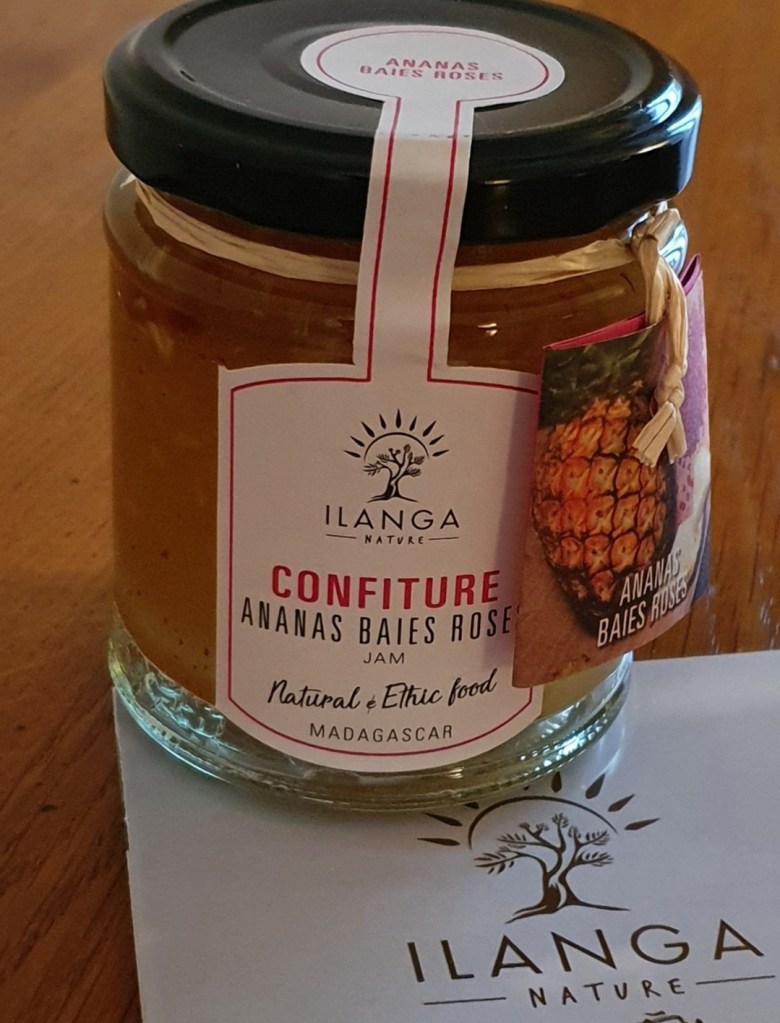 • un pot de confiture Ananas 🍍 aux baies roses .Rien qu’à l’évocation de son nom, la Confiture Ananas Baies Roses fait saliver de par son mariage de deux saveurs exquises. Au petit dĂ©jeuner, au goĂ»ter ou au dessert, les occasions de dĂ©guster ce dĂ©lice ne manquent pas ! Parce que nous savons que vous ĂȘtes un fin gourmet et que vous mĂ©ritez le meilleur de ces fruits, Ilanga Nature a prĂ©parĂ© pour vous la meilleure des Confitures Ananas Baies Roses, avec des ingrĂ©dients 100% naturels provenant des riches et prĂ©cieuses rĂ©serves naturelles de Madagascar.