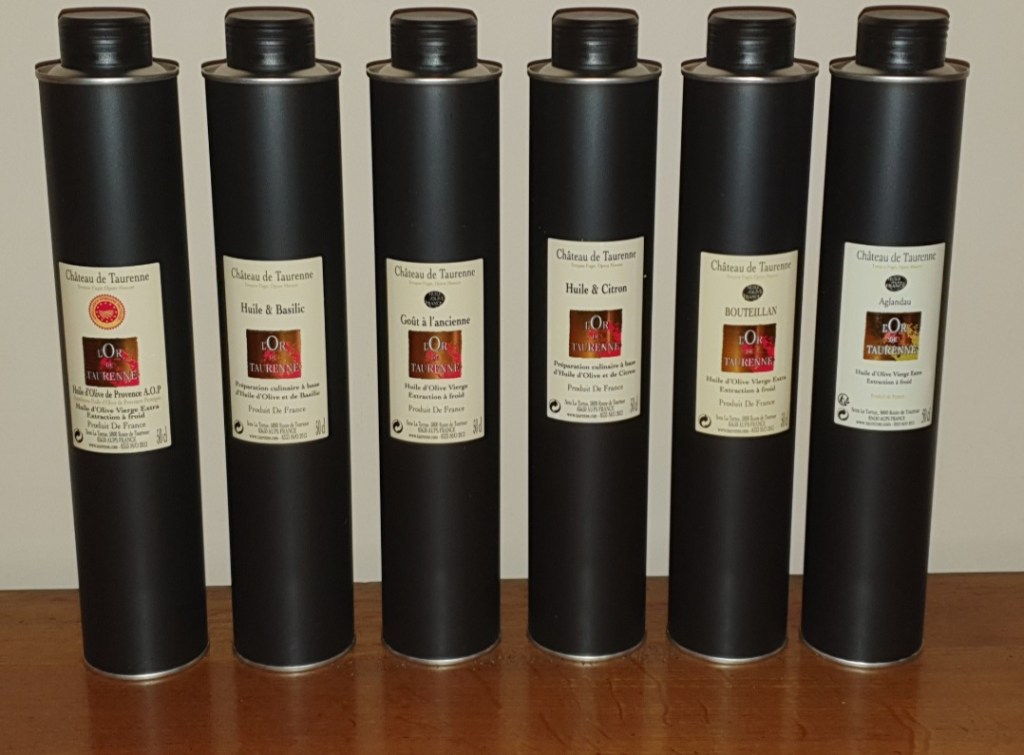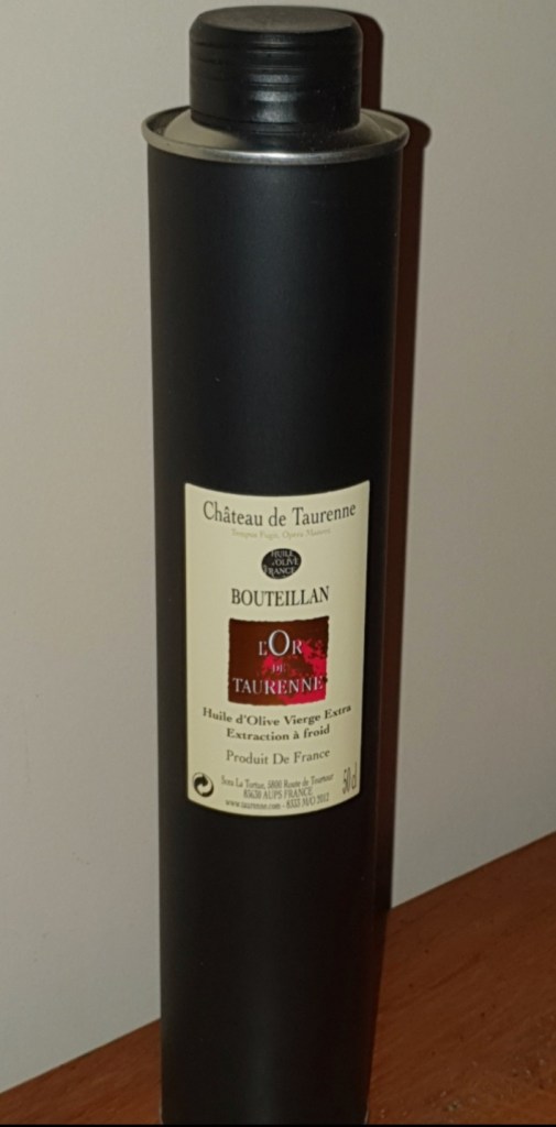 Donc imaginez ,quel plaisir ça a été quand j’ai reçu de la part de Yann F. de l’huilerie de Château de Taurenne un superbe colis d’huile d’olive differentes 🤗