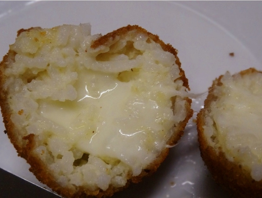 13/ Faites chauffer votre friteuse électrique puis mettez dans votre panier les ARANCINIS et cuire jusqu’à ce qu’ils aient une belle coloration dorée .