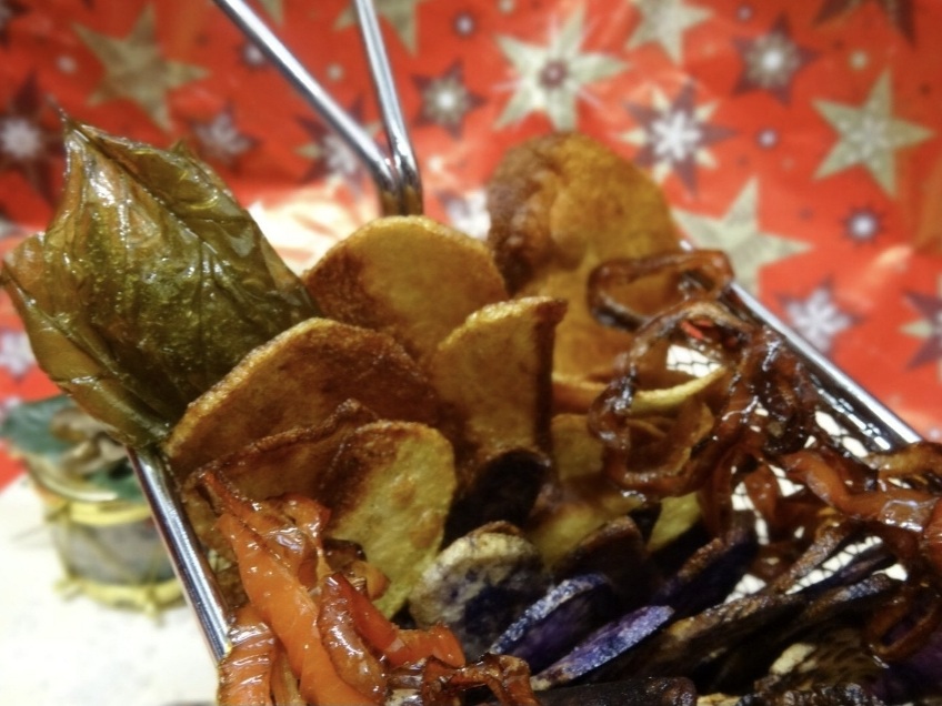 6/Dès que les chips commencent à dorer ,sortez les à l’aide d’une écumoire .
