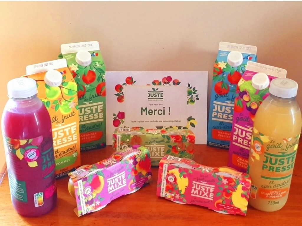↪ Les Juste mixés sont des compotes de fruits juste cueillis et juste mixés, sans sucres ajoutés. On sent le goût originel du fruit avec cette manière de faire .Pour certaines compotes ( et notre palais étant pas autant habitué) on a trouvé qu’il manquait de saveur un peu sucrée.