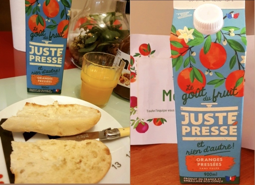 ↪ Comme vous pouvez le constater le Juste pressé Oranges pressées sans pulpe était parfait au petit-déjeuner : un parfait goût d’oranges 🍊 et une douceur incroyable.