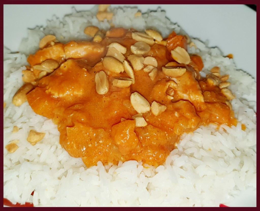 Partons un peu en voyage en Afrique avec cette recette de Poulet façon mafé au potiron avec du riz basmati & des cacahuètes