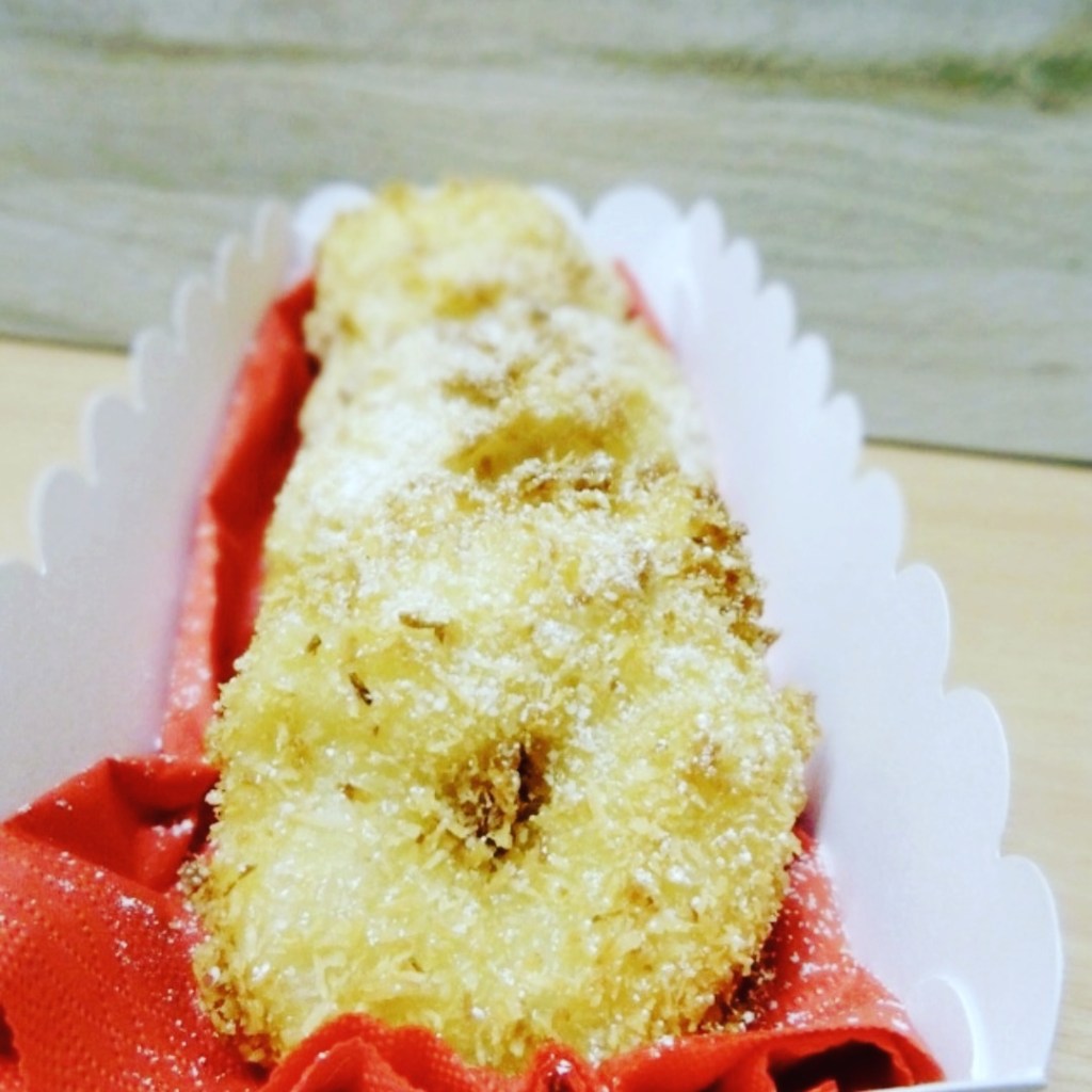 10/Plongez vos tranches d’ananas dans la pĂąte Ă beignets puis roulez la dĂ©licatement dans la noix de coco rĂąpĂ©e. Faites de mĂȘme avec les autres tranches.