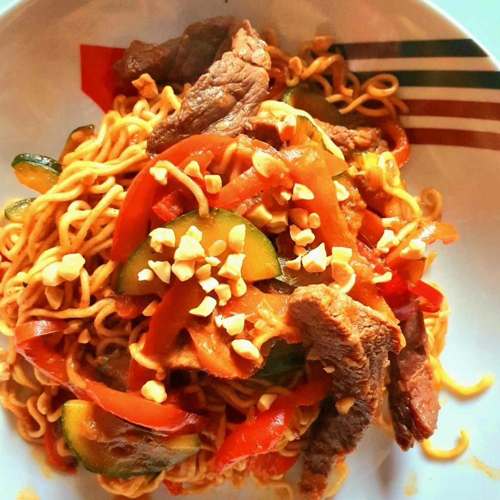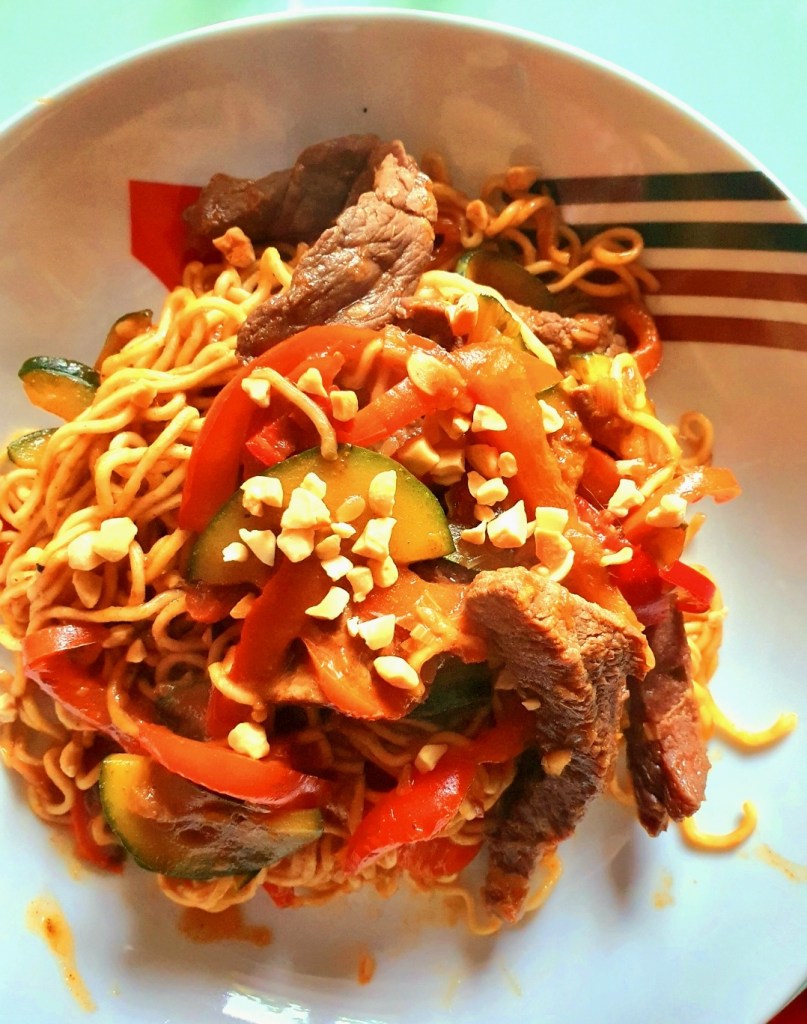 Chez nous les pâtes c’est à toutes les sauces et au delà des continents .C’est pourquoi aujourd’hui je vous présente une recette de nouilles 🍜 à tendance asiatique : WOK DE NOUILLES SAUTÉES AU BOEUF